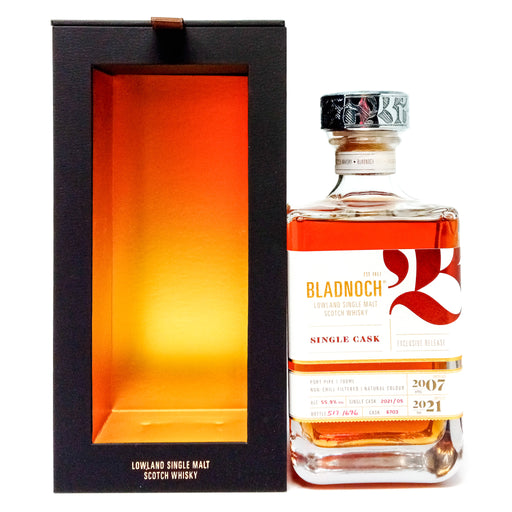 View full detailsBladnoch 2007 Single Cask #6703 is a limited Lowland single malt matured for 14 years in a Port pipe, bottled at cask strength. Distilled April 200...