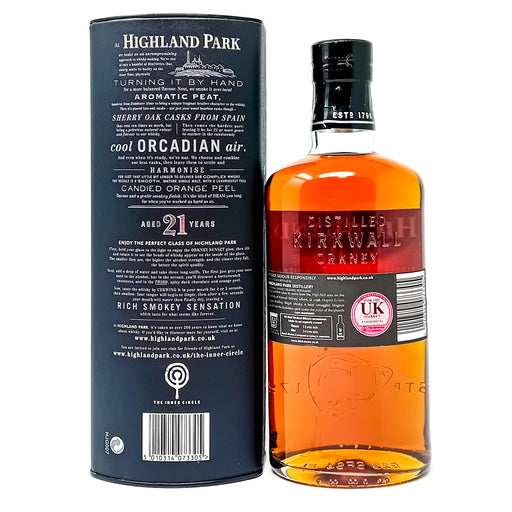 View full detailsHighland Park 21 Year Old Pre-2017 Single Malt Scotch Whisky. Crafted in Orkney and matured in predominantly American oak casks seasoned with sherr...