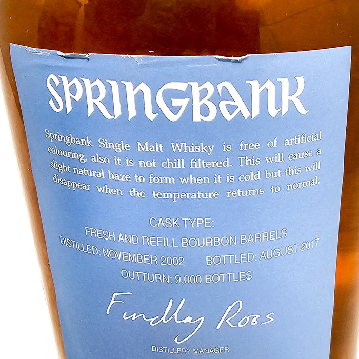 Springbank 2002 14 Years Old Bourbon Wood Single Malt Scotch Whisky, 70cl, 55.8% ABV
