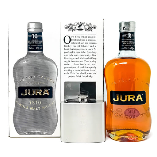 Old and Rare WhiskyExperience the excellence of the Jura 10 Year Old Single Malt Scotch Whisky presented in an elegant gift set, complete with a branded hip flask. Th...
