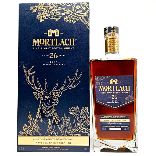 Old and Rare WhiskyExperience the Mortlach 26 Year Old 2019 Special Release Cask Strength Single Malt Scotch Whisky. This limited edition is matured in first‐fill Ped...