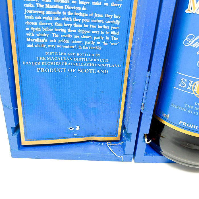 Presented in an iconic blue label and box, this whisky stands as a classic piece for any collection. While some boxes may show slight wear, the quality inside remains unparalleled, maintaining its status as a cherished gem from the era before the introduction of the Fine Oak series. Perfect for both enjoyment and investment, this is a whisky that truly embodies the elegance and depth of The Macallan’s storied offerings.