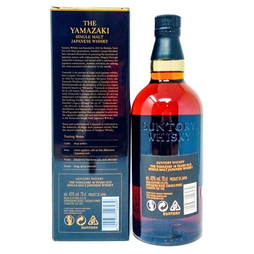 Old and Rare WhiskyThis Yamazaki 18 Year Old single malt whisky represents a masterful expression from Japan’s esteemed Yamazaki Distillery in Shimamoto, Osaka. Prese...
