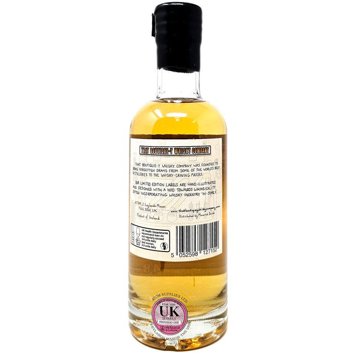 Independently bottled by That Boutique-y Whisky Company, this peated single malt from the renowned Cooley Distillery in Ireland offers a unique and refined drinking experience. As the first batch of its kind, Batch #1 comprises only 390 exclusive bottles, making it a prized addition for any whiskey enthusiast.