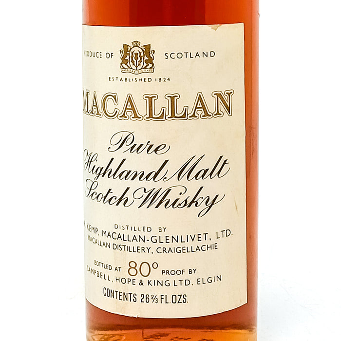 A very special 1955 vintage bottling of Macallan by Campbell Hope & King released in the 1970s. This is presented in a 26 2/3 fl .oz. bottle at 80 Proof. This was bottled for the UK market.
