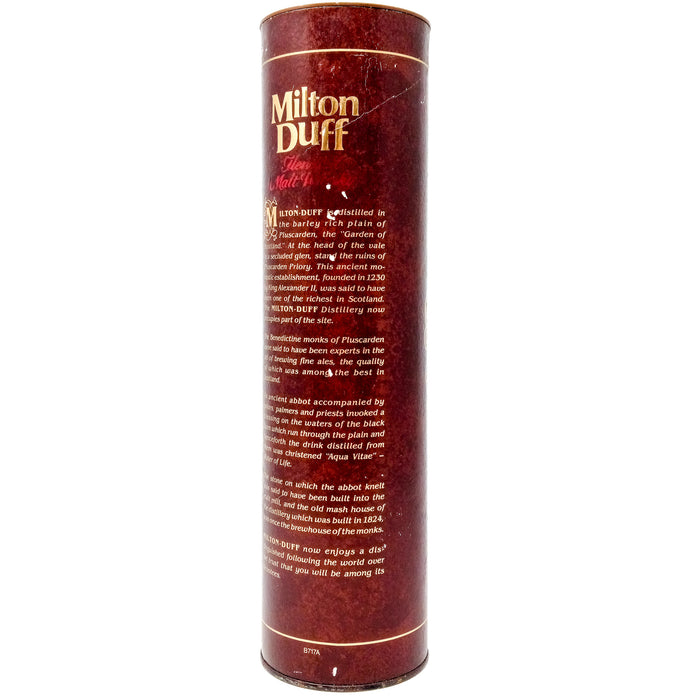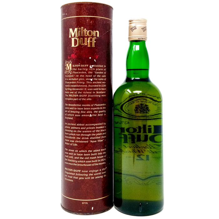Discover the refined allure of Miltonduff 12 Year Old Single Malt Scotch Whisky – a finely crafted gem from the heart of Speyside. Whether you wish to buy Miltonduff 12 Year Old or acquire Miltonduff 12 Year Old Single Malt Scotch, this exceptional whisky for sale delivers a premium taste that collectors and connoisseurs appreciate. Its balanced sweetness and subtle complexity make it an outstanding addition to any collection.